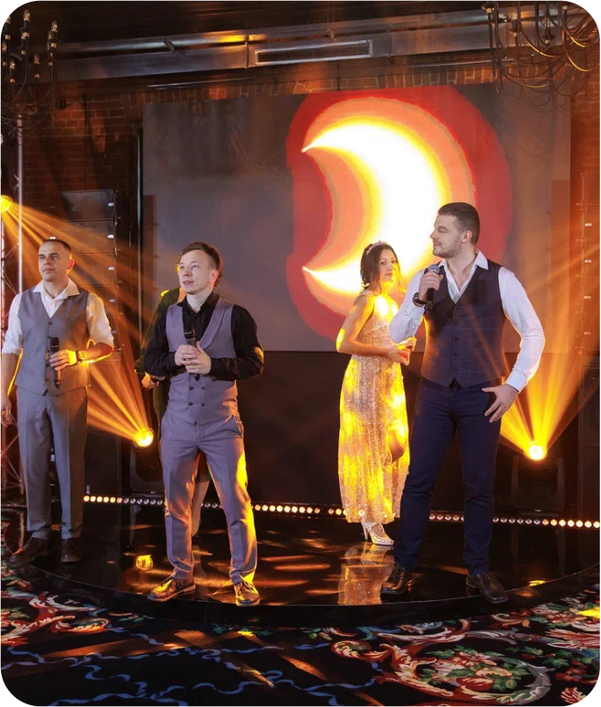 Мы за то, чтобы каждое корпоративное событие проходило на высоком уровне, чтобы подчеркнуть важность, масштаб и впечатления. В результате, ваш корпоратив станет успешным и ярким событием в жизни компании.